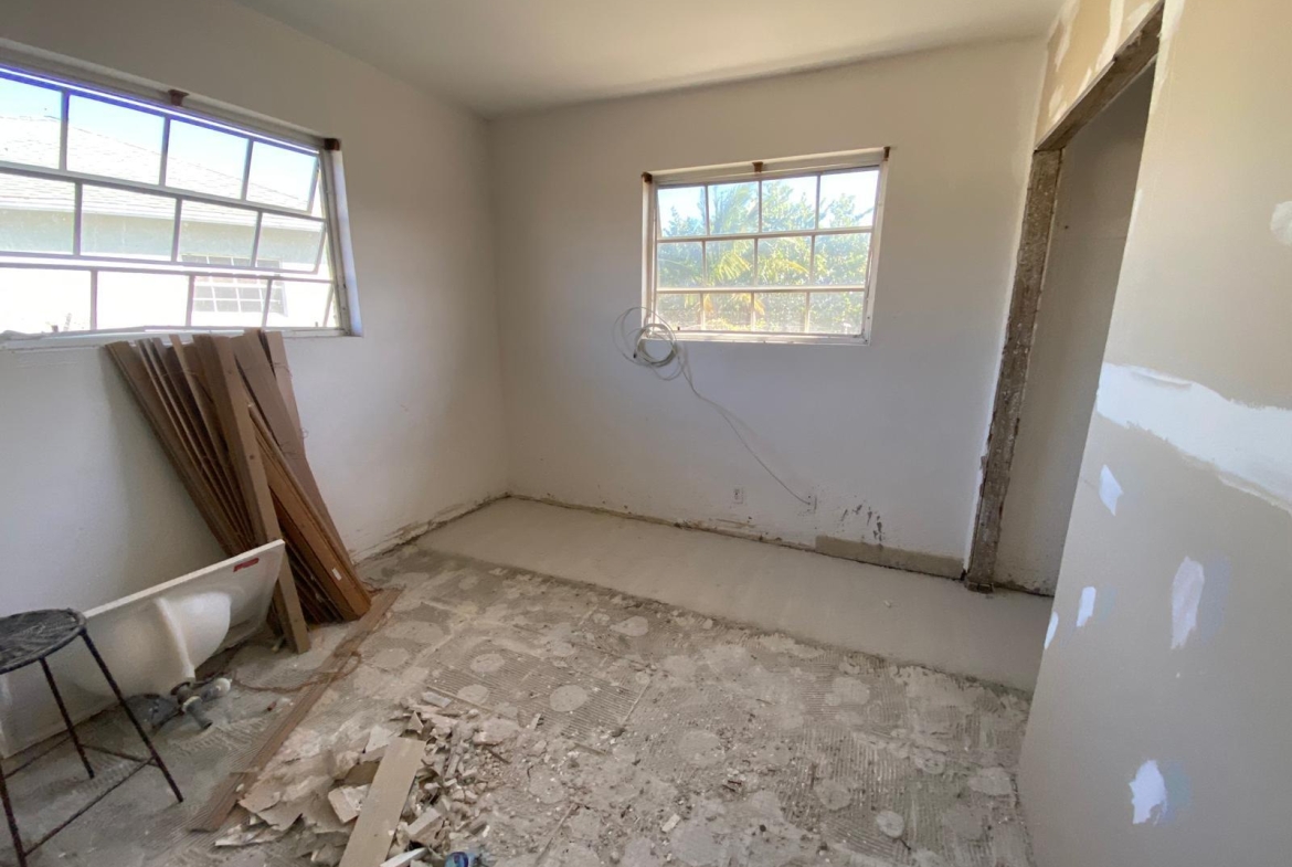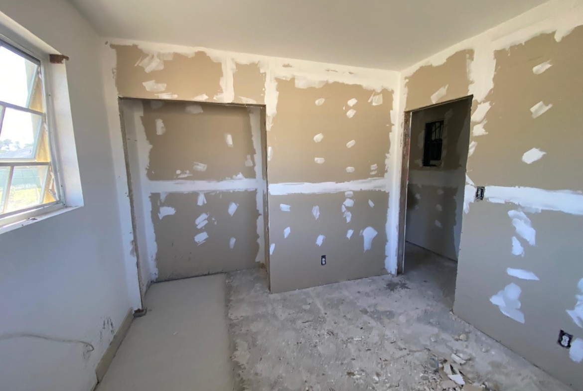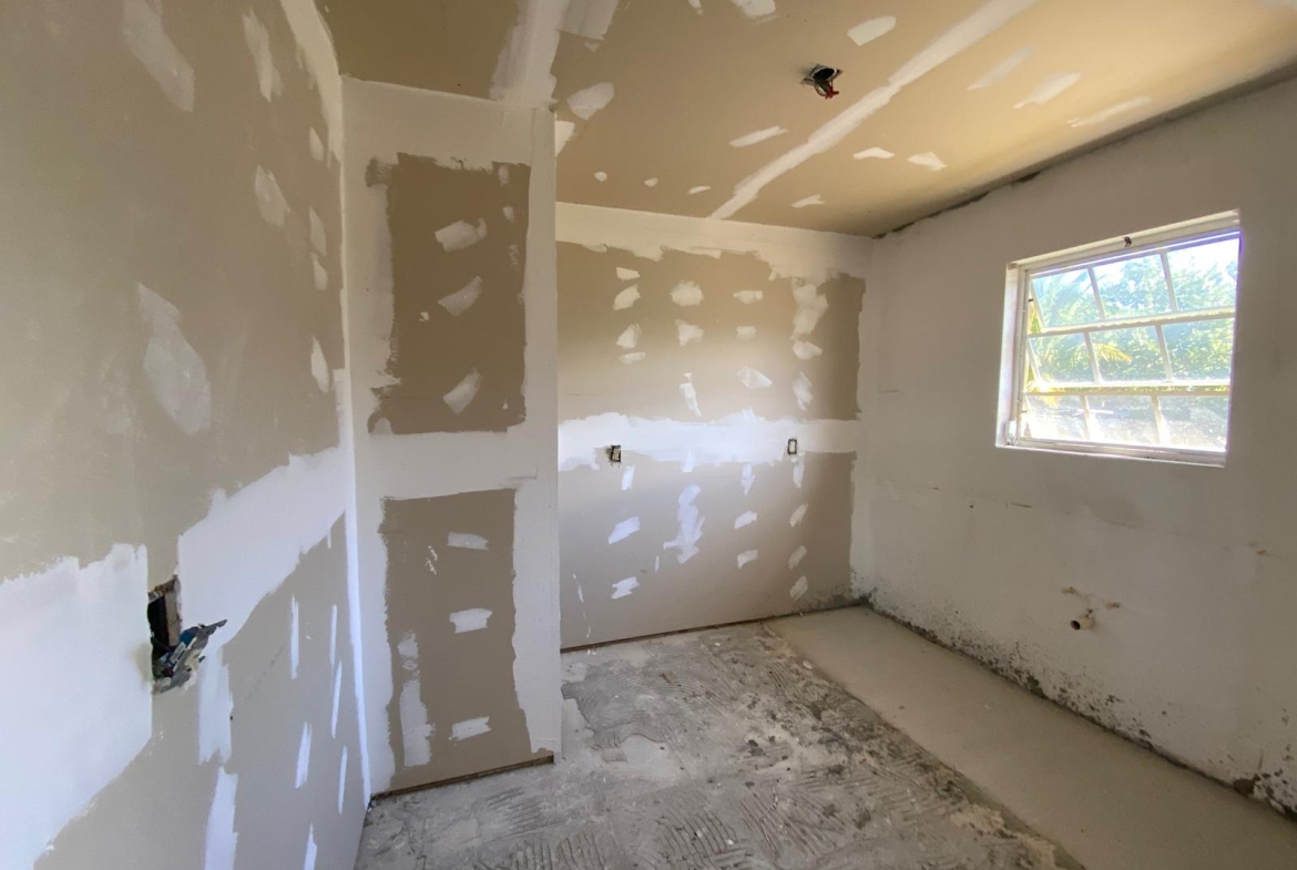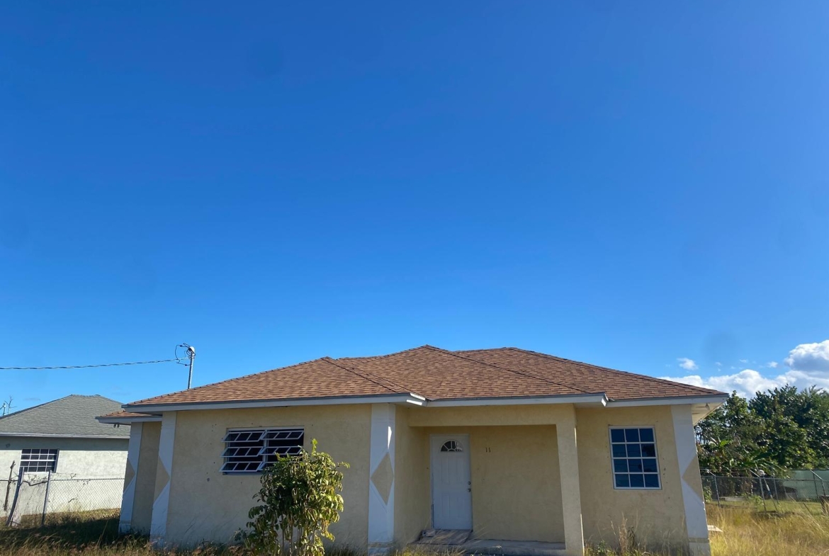 This single-storey masonry home features a clean rectangular layout with a front protrusion and a welcoming 46 sq. ft. entrance porch. The exterior is finished in a durable marblecrete texture, with awning windows in mill-finish aluminum frames providing natural light and ventilation. Constructed with concrete blocks tied together by reinforced concrete columns and beams, the structure is strong and reliable. A hip roof—built with timber trusses, plywood decking, and asphalt shingles—completes the shell. The interior spans approximately 1,492 sq. ft. and includes three bedrooms, two bathrooms, a kitchen, laundry area, and an open-concept living/dining room. Please note: This home is being sold unfinished and is priced accordingly—offering an excellent opportunity for customization and long-term value.