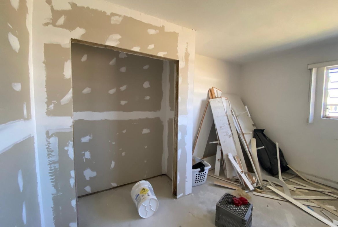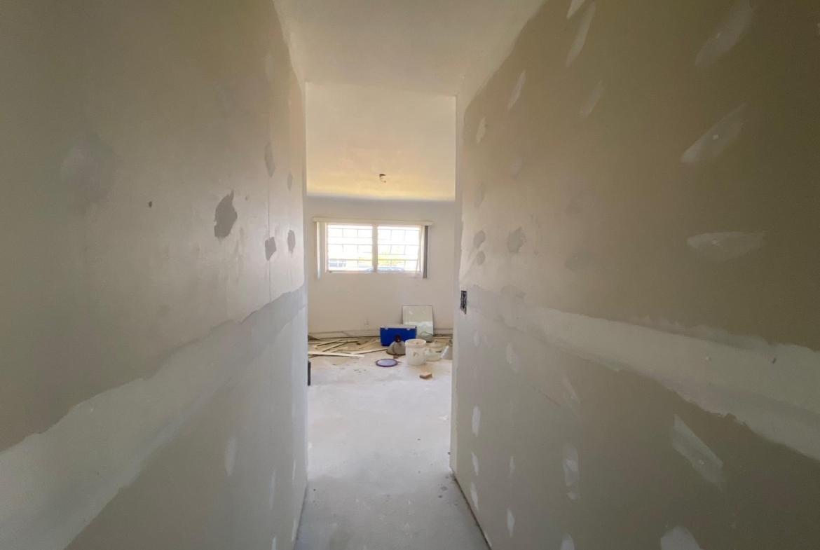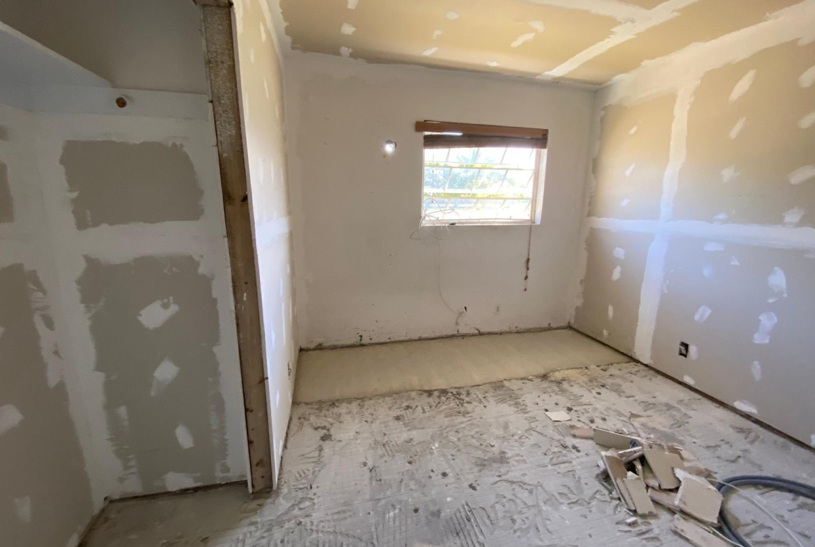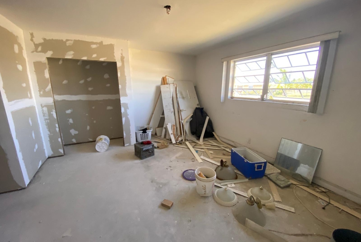 This single-storey masonry home features a clean rectangular layout with a front protrusion and a welcoming 46 sq. ft. entrance porch. The exterior is finished in a durable marblecrete texture, with awning windows in mill-finish aluminum frames providing natural light and ventilation. Constructed with concrete blocks tied together by reinforced concrete columns and beams, the structure is strong and reliable. A hip roof—built with timber trusses, plywood decking, and asphalt shingles—completes the shell. The interior spans approximately 1,492 sq. ft. and includes three bedrooms, two bathrooms, a kitchen, laundry area, and an open-concept living/dining room. Please note: This home is being sold unfinished and is priced accordingly—offering an excellent opportunity for customization and long-term value.